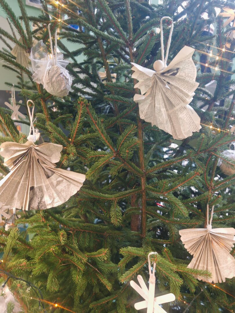 Stare i dotrajale knjige koje su bile predviđene za otpis dobile su sasvim novu svrhu. Umjesto da završe zaboravljene, pretvorene su u prekrasne anđele i kuglice, pažljivo oblikovane vrijednim učeničkim rukama. Svaki ukras priča svoju priču – o mašti, trudu i odgovornom odnosu prema prirodi.
