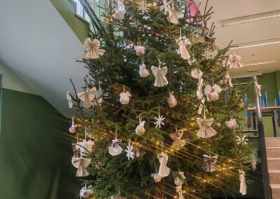 U sklopu Erasmus+ projekta „Be Green, Be Well“, naša je škola još jednom pokazala kako se briga za okoliš može spojiti s kreativnošću, zajedništvom i blagdanskim duhom. Učenici su, uz vodstvo svojih učiteljica, sudjelovali u posebnoj božićnoj aktivnosti – kićenju školskog bora ukrasima izrađenima od recikliranih materijala.