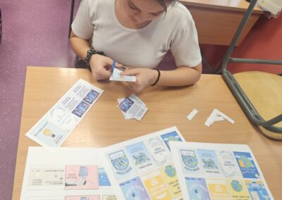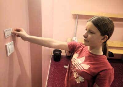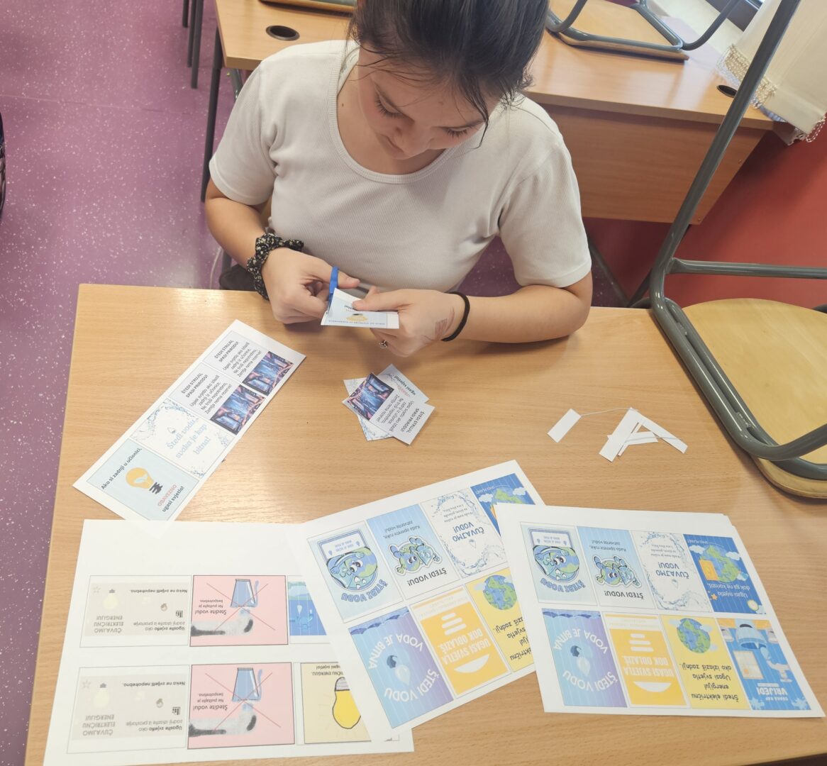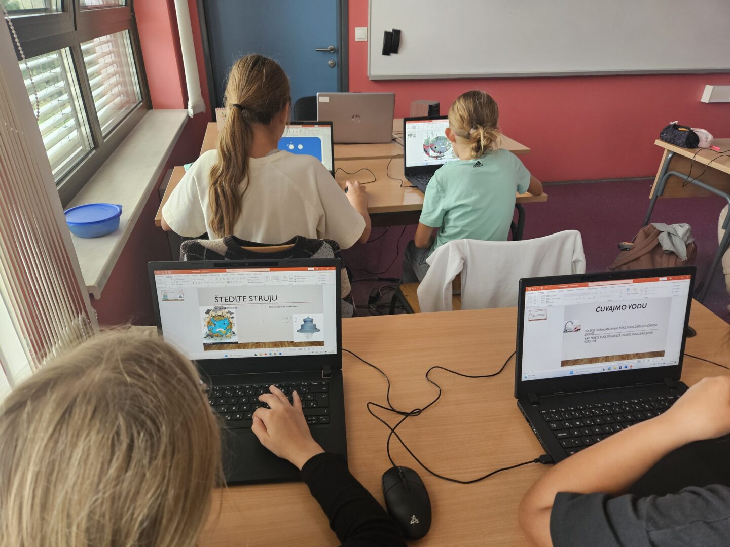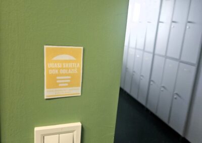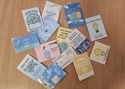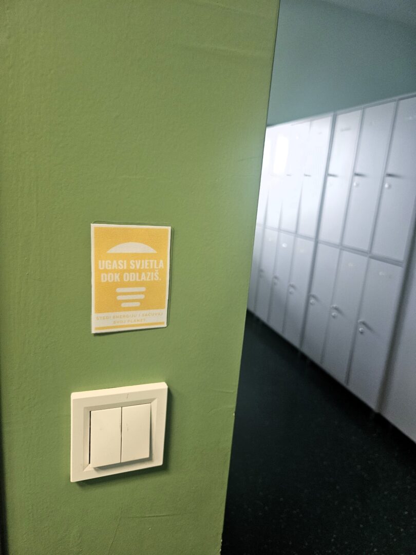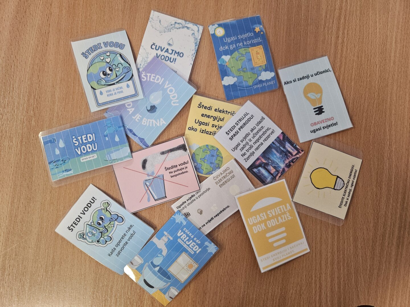 Učenici predmetne nastave izradili su kartice koje će poticati na ekološke navike uštede električne energije i vode. Kartice kojima se potiče gašenje svjetla ako se ne koristi, postavili su kod prekidača na hodnicima, u učionicama i svlačionicama. Svjesni važnosti vode za život na Zemlji, učenici su kod slavina za vodu postavili kartice kojima se potiče savjesno korištenje vode.