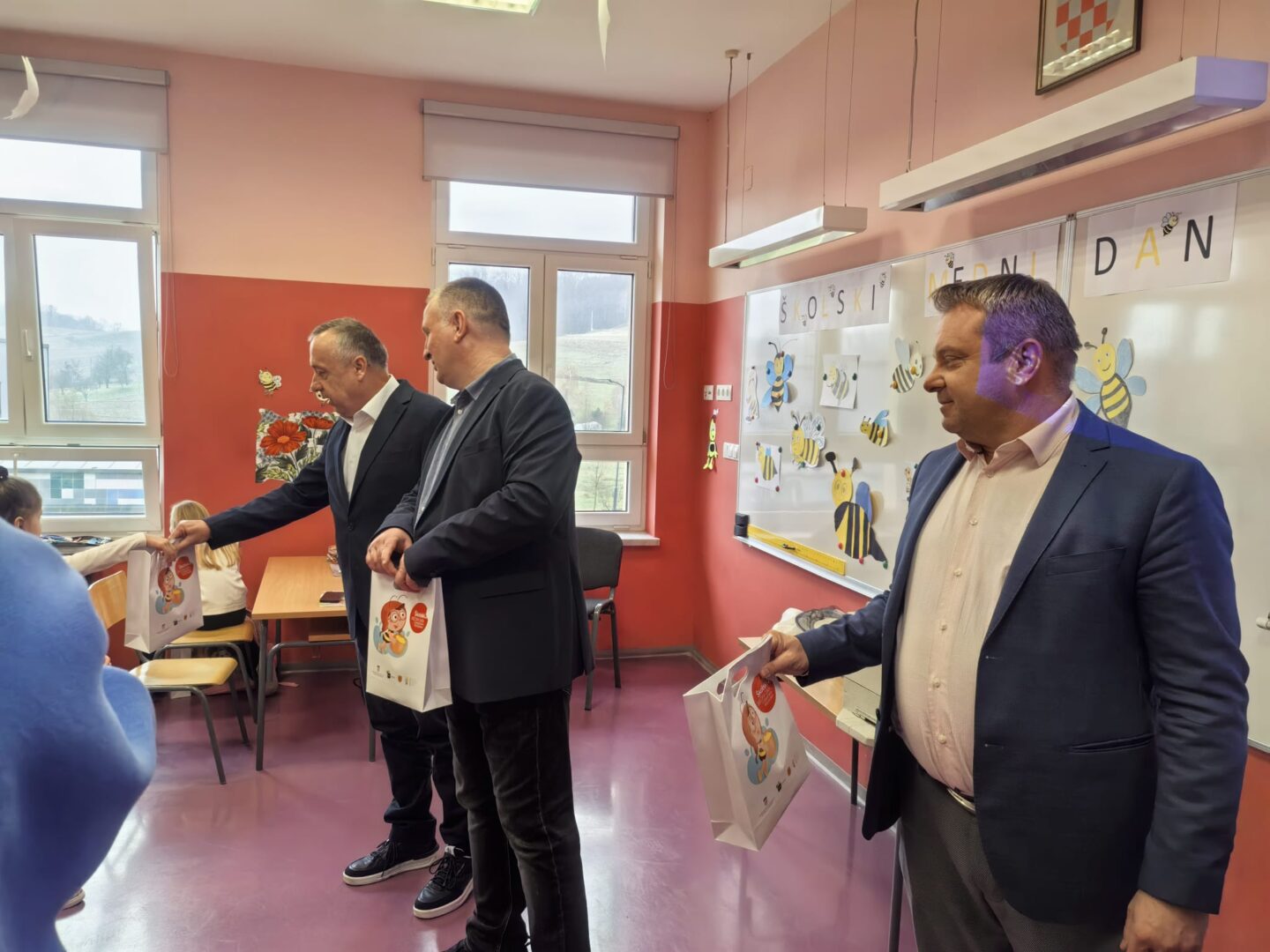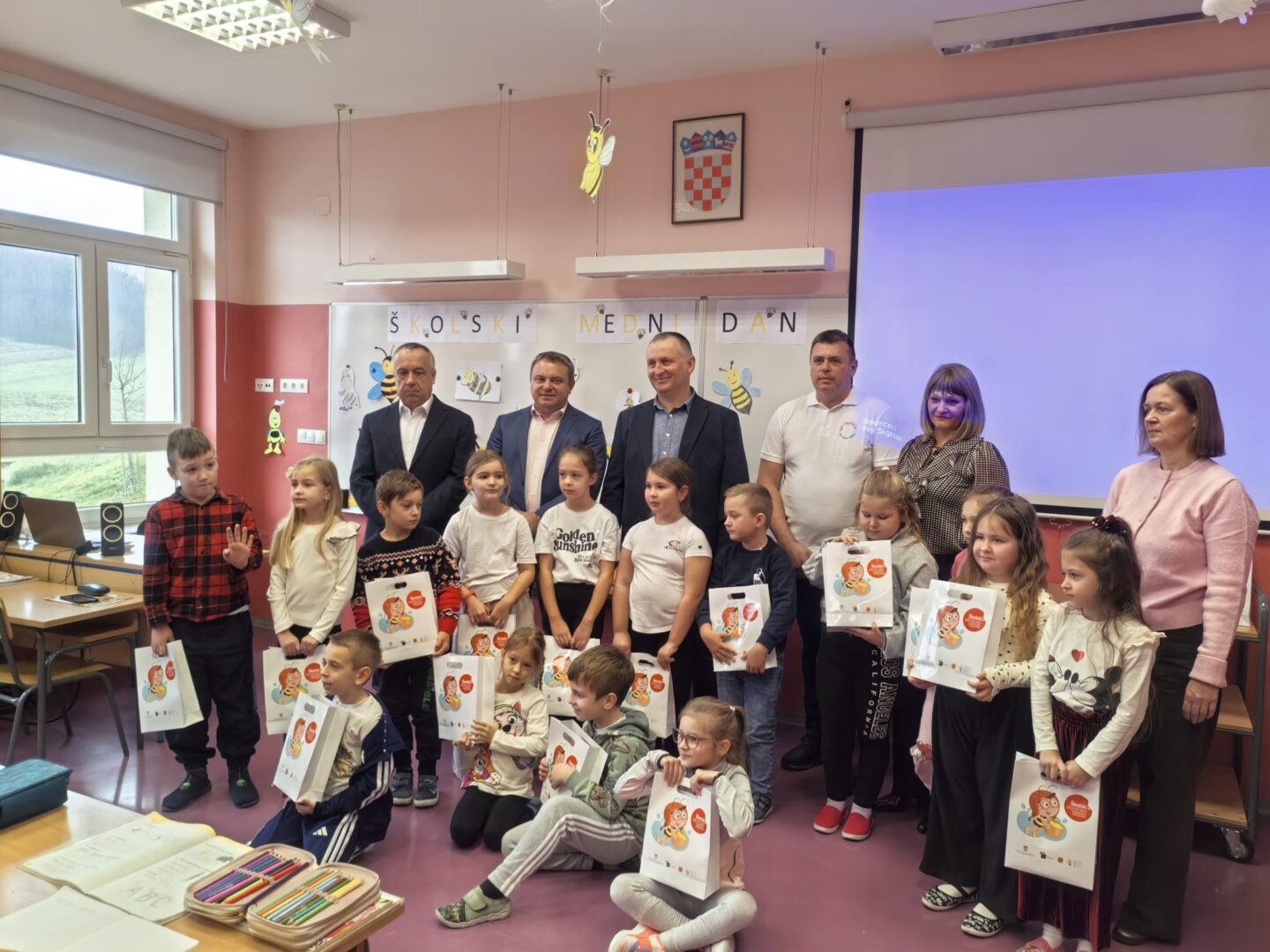 Zamjenik župana Damir Tomljenović sudjelovao je u podjeli meda prvašićima naše škole u sklopu nacionalnog programa „Školski medni dan s hrvatskih pčelinjaka za 2025. godinu“.