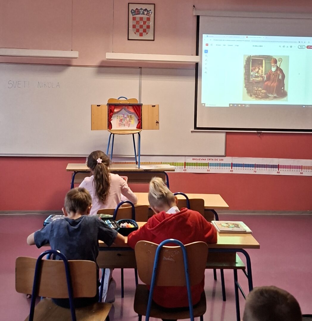 Sveti Nikola je najdraži svetac djece te ih je u četvrtak posjetio kroz priču na satovima vjeronauka. Učenici nižih razreda i petaši upoznali su se s njegovim životom kroz japansku tehniku pričanja kamishibai. Kamishibai je tradicionalna japanska tehnika pričanja priča koja kombinira vizualne ilustracije i usmeno pripovijedanje. Naziv dolazi od japanskih riječi kami – papir i shibai- drama te doslovno na hrvatskom znači “papirnato kazalište”. Pripovjedač za pričanje koristi mali drveni okvir – butai – u koji umeće niz ilustriranih slika/kartica te priča priču o istima.