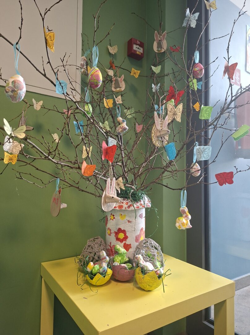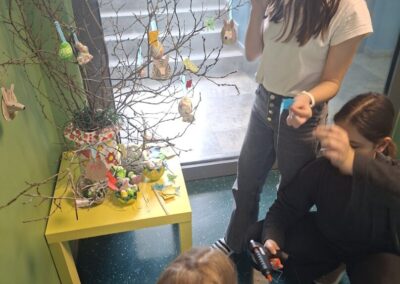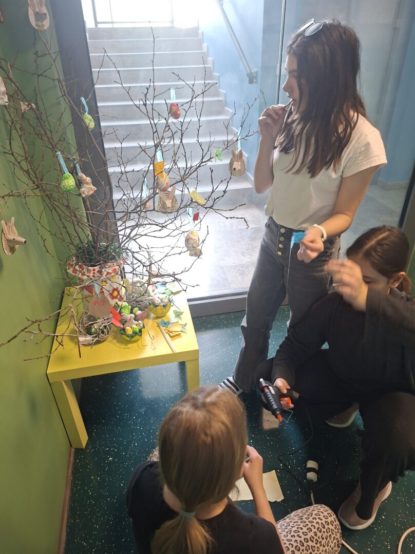 Sve radove učenici su izložili u holu škole gdje smo na taj način i ukrasili školu za blagdan Uskrsa.